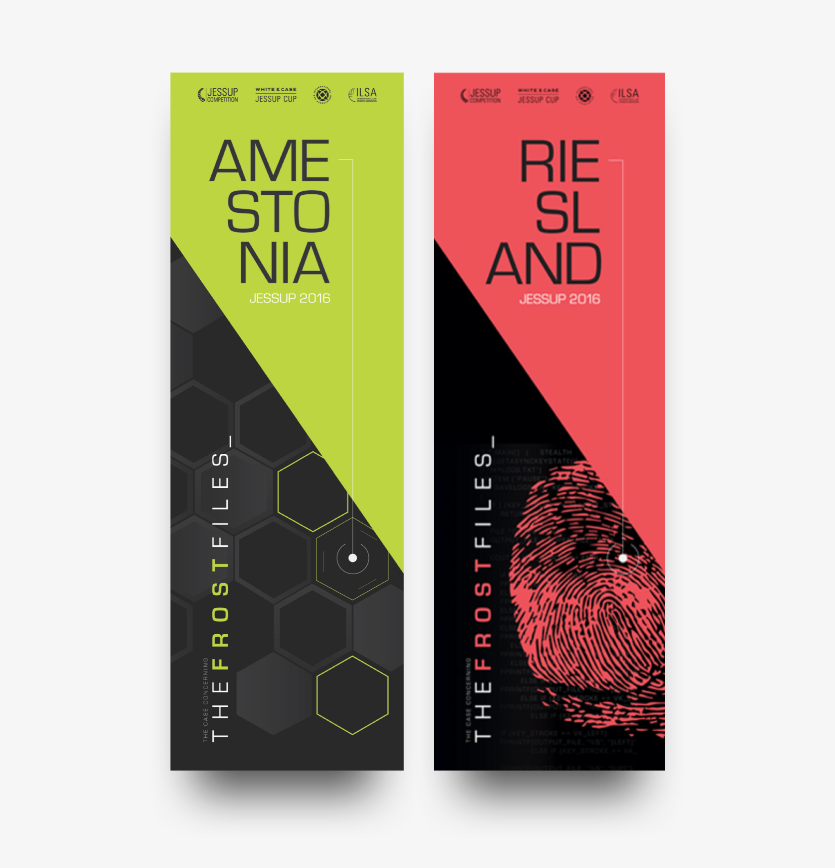 These designs highlight the juxtaposition between two opposing countries. The key issues addressed by the compromis are highlighted by elements that bring the story to life. Each graphic element represents fundamental concepts that weigh in on the conflicting viewpoints of these neighboring countries.